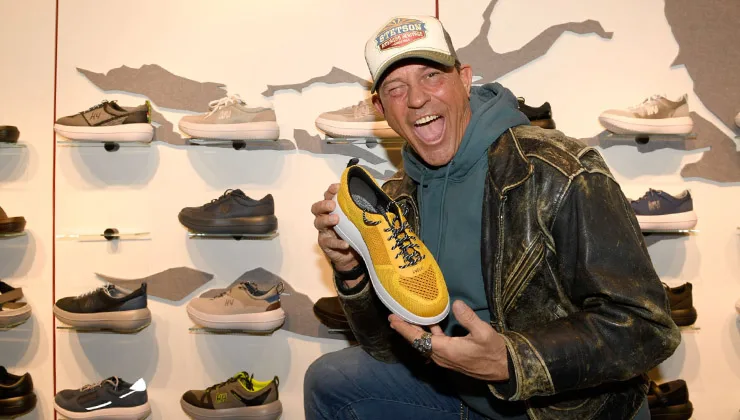 Wolfgang Fierek (u.i.Bild), der einen Live Gig umjubelt performte, erzählte, wie ihm MBT-Schuhe – die Vorläufer der kybun Schuhe – nach seinem schweren Motorradunfall halfen, seinen Fuß zu retten und wieder schmerzfrei gehen zu können. Heute setzt er auf kybun Schuhe und führte sein peppiges gelbes Modell gleich aus.